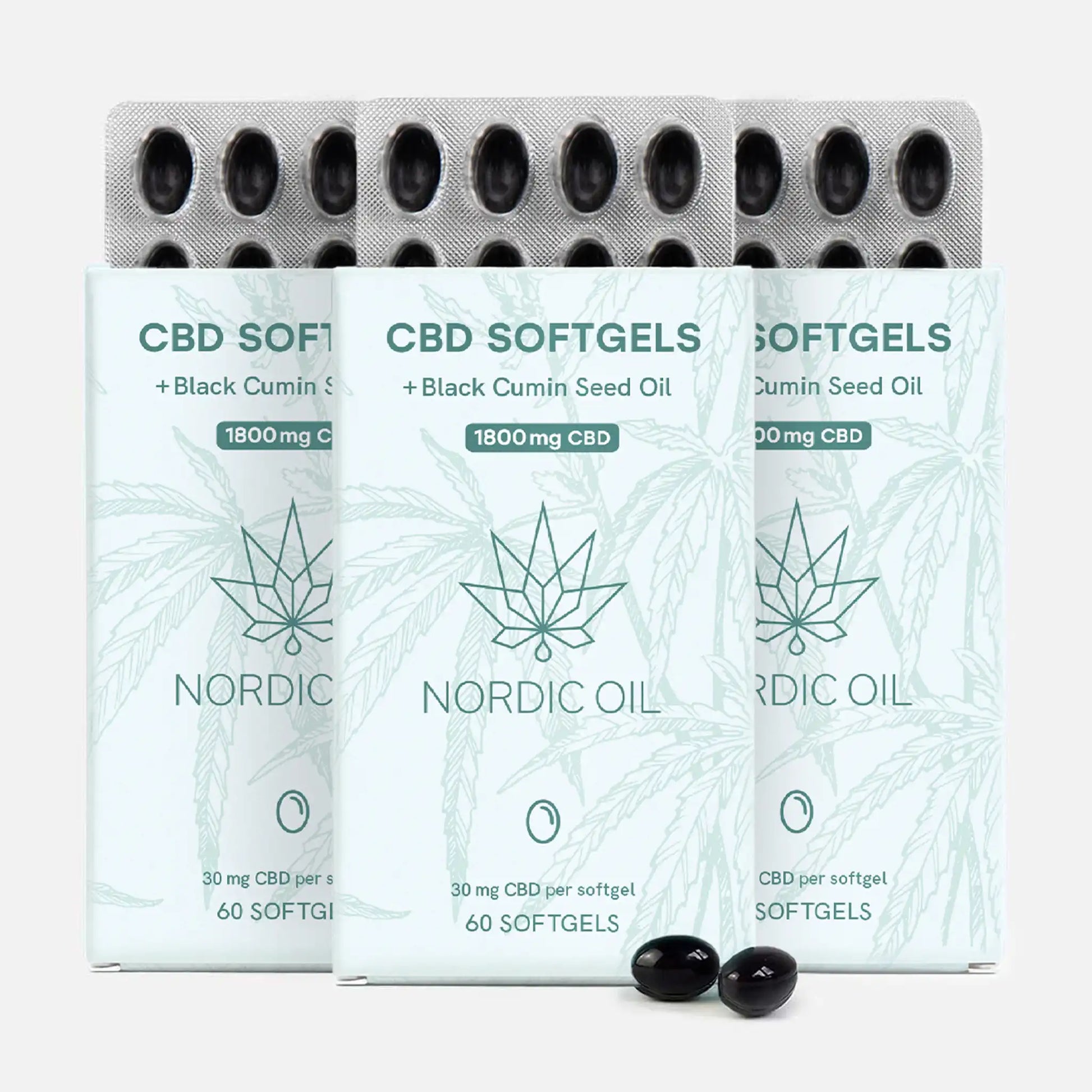 - 3 pakkausta - 60 kapselia, joissa on 1800 mg CBD:tä per pakkaus