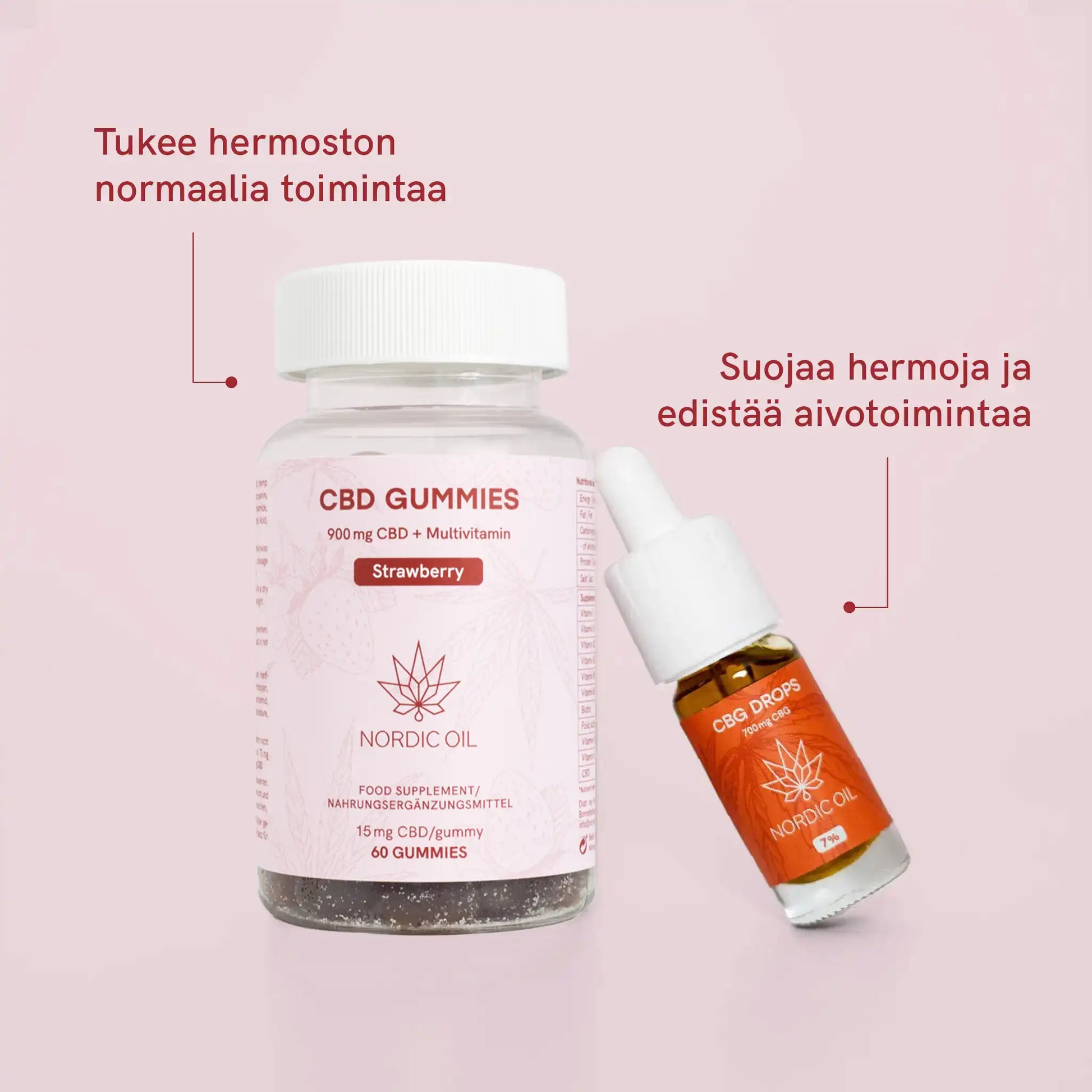 - CBD Fruit Gummies + Monivitamiini: Hermoston normaaliin toimintaan