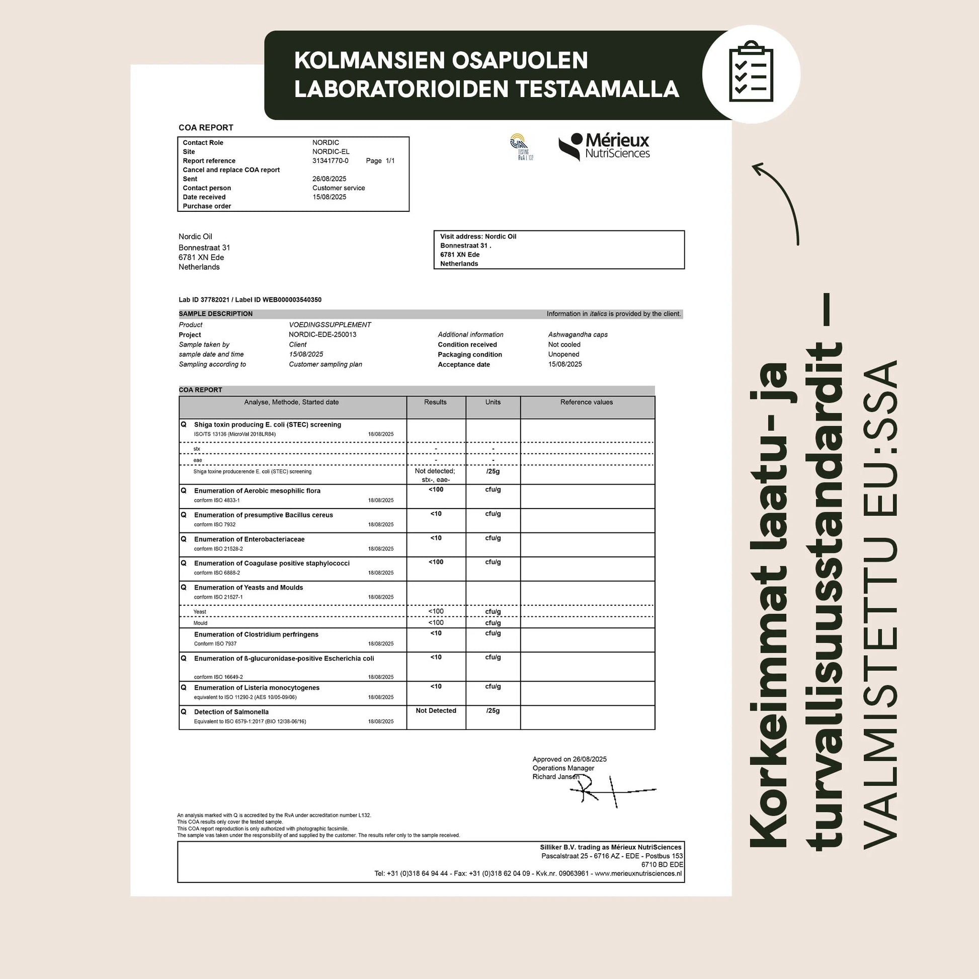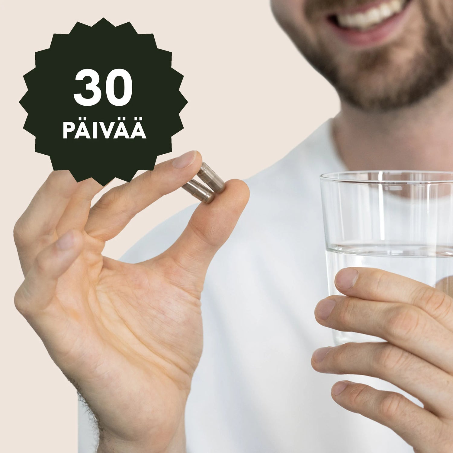 - 500 mg Ashwagandhan juuriuutetta (10:1) per kapseli