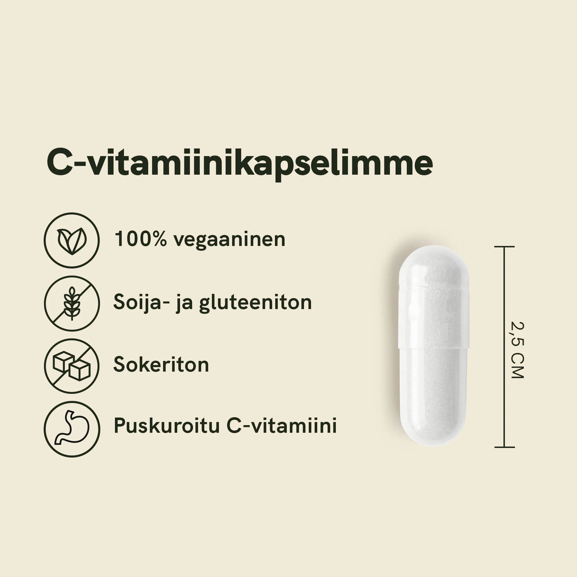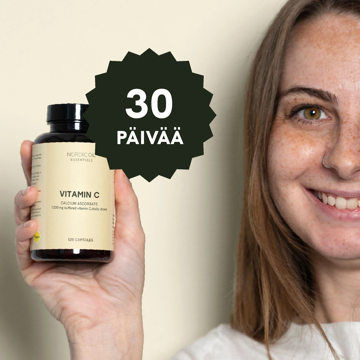 Korkean annoksen C-vitamiinikapselimme tarjoavat lempeän tehon, erityisesti kylmän kauden aikana. Valmistettu kalsiumaskorbaatista, happovapaasta C-vitamiinin muodosta, nämä kapselit ovat vatsaystävällisiä ja sopivat erityisesti herkälle ruoansulatukselle. Jokaisessa pullossa on 120 vegaanista kapselia, jotka on valmistettu ilman gluteenia, laktoosia, sokeria tai keinotekoisia lisäaineita.