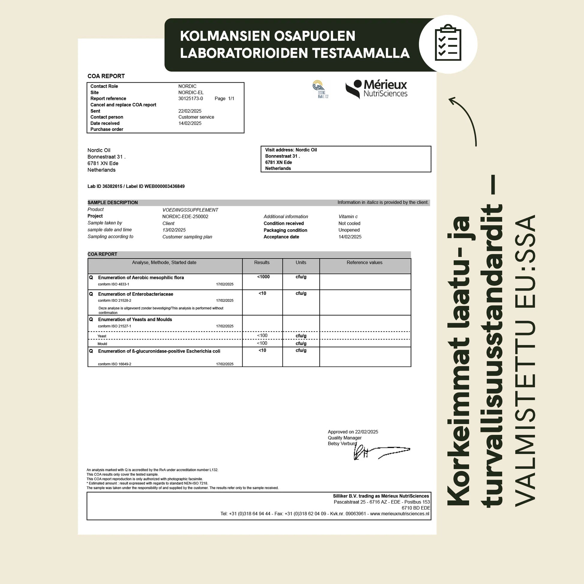 Kehitetty tukemaan immuunijärjestelmääsi ympäri vuoden, nämä kapselit edistävät myös kollageenin muodostumista, mikä on tärkeää ihon, luiden ja nivelten terveydelle, sekä tukevat normaalia aineenvaihduntaa ja hermoston toimintaa. Ne on valmistettu EU korkeimpien laatuvaatimusten mukaisesti, tarjoten puhtaan ja luotettavan valinnan kokonaisvaltaisen hyvinvoinnin tukemiseksi.