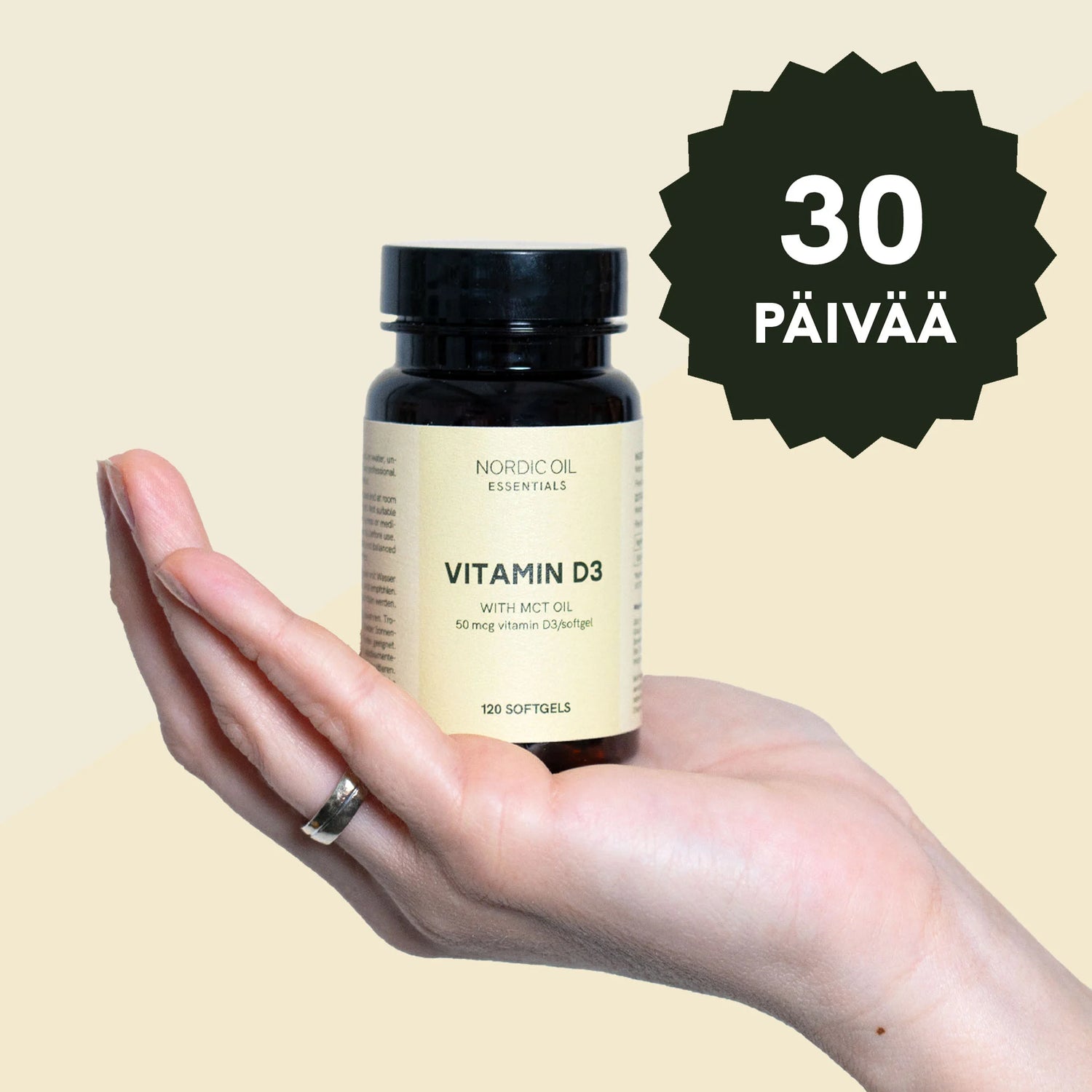 - 120 kapselia, joissa on 50 mcg D3-vitamiinia per kapseli.