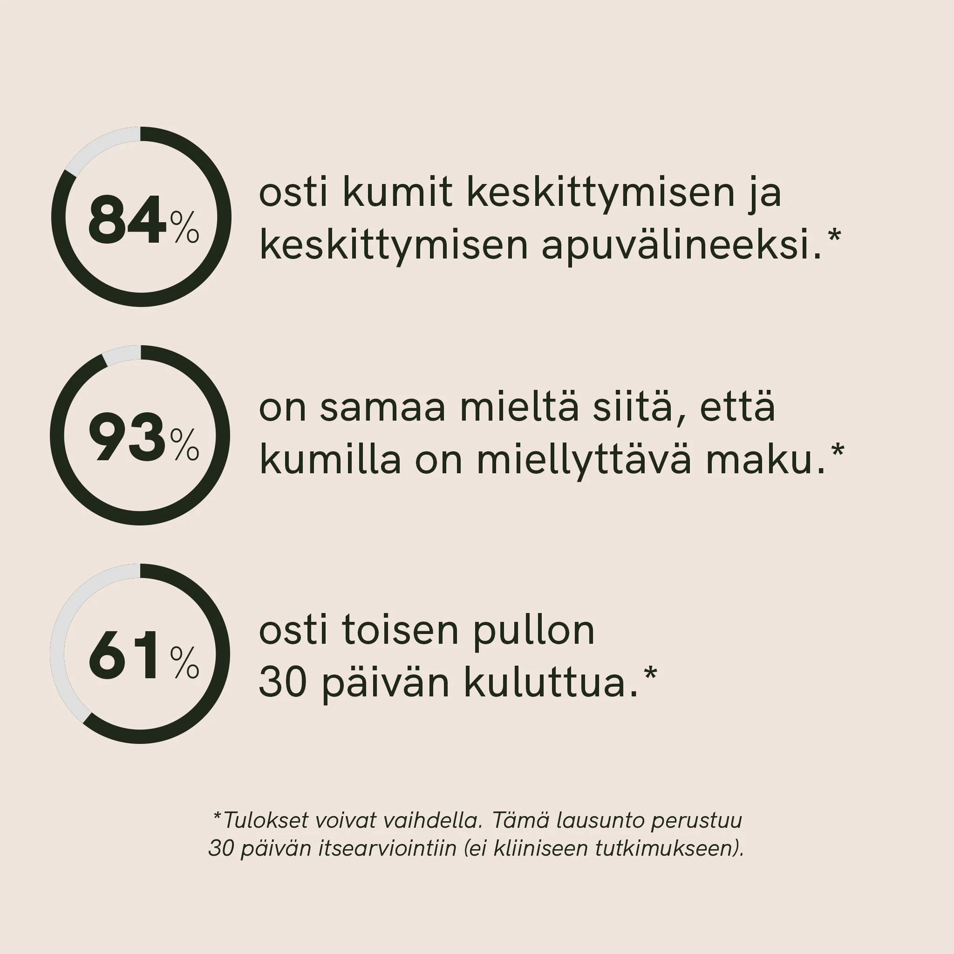 Voit ottaa kumit mihin aikaan päivästä tahansa, joka sopii päivittäiseen rutiinisi: aamulla, iltapäivällä tai illalla. Tärkeintä on ottaa niitä säännöllisesti joka päivä.