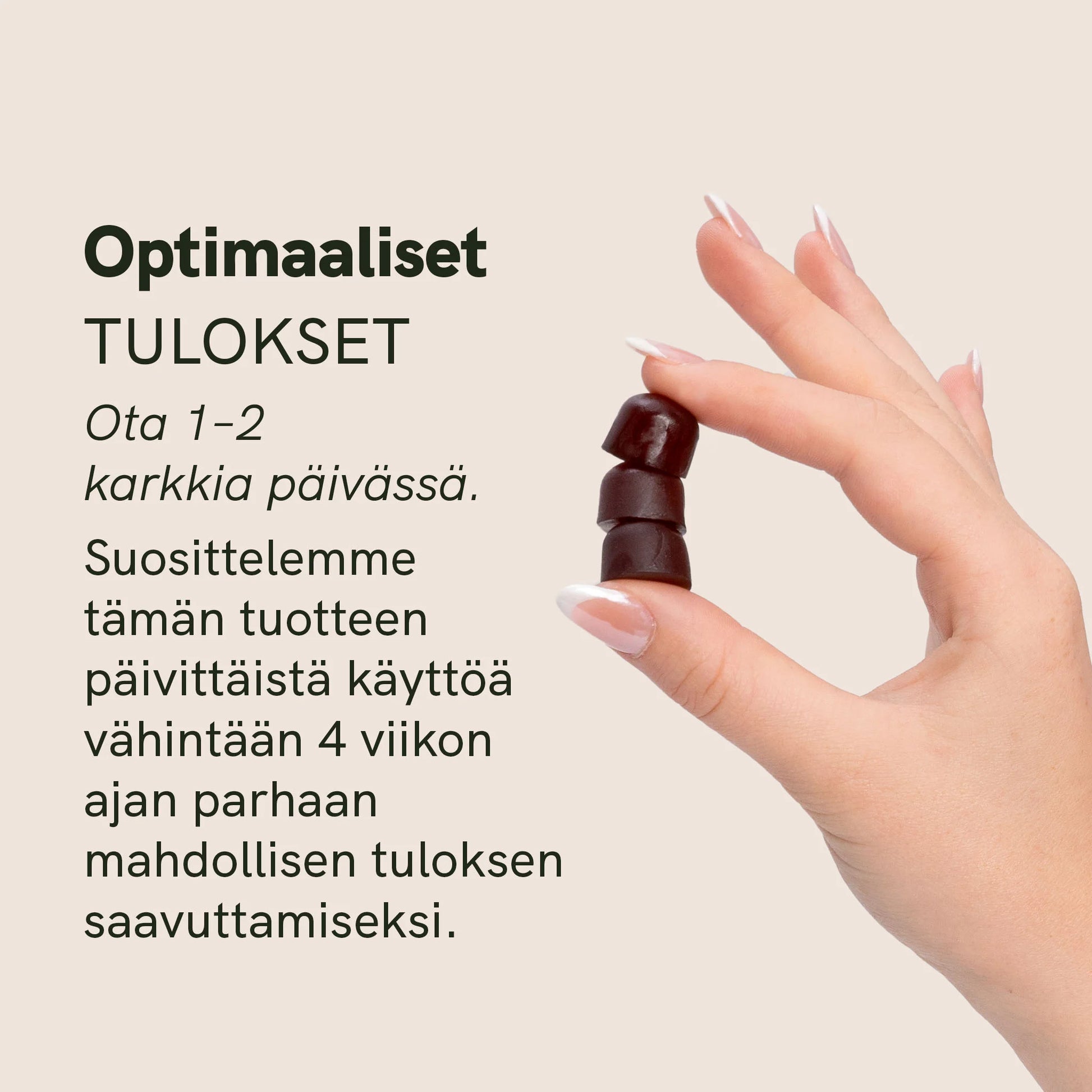 - 60 gummies sisältäen 200 mg luomu Siiliorakas-uutetta