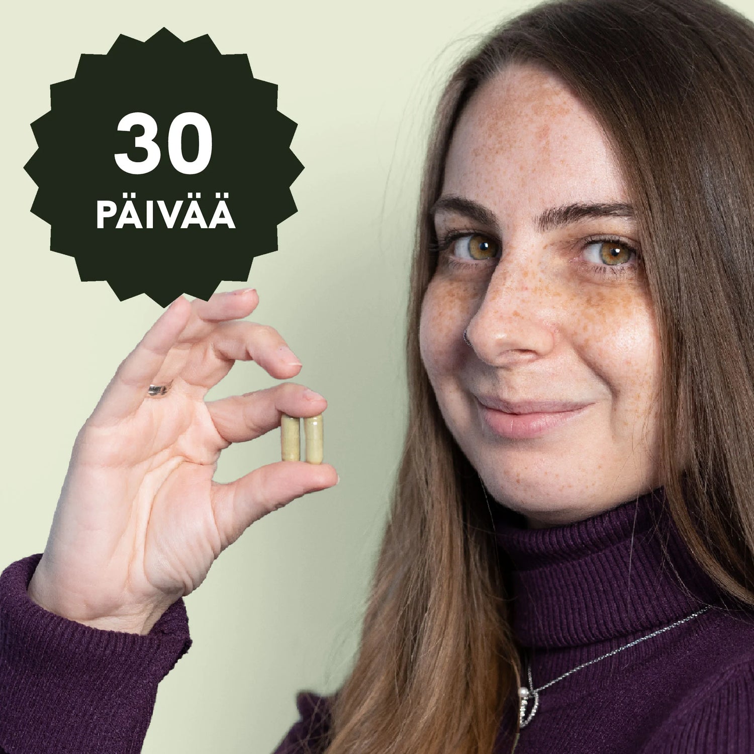 Ei sovellu lapsille. Raskauden, imetyksen, sairauksien tai lääkityksen aikana, kysy neuvoa terveydenhuollon ammattilaiselta ennen käyttöä. Tämä tuote ei korvaa terveellistä ja tasapainoista ruokavaliota.